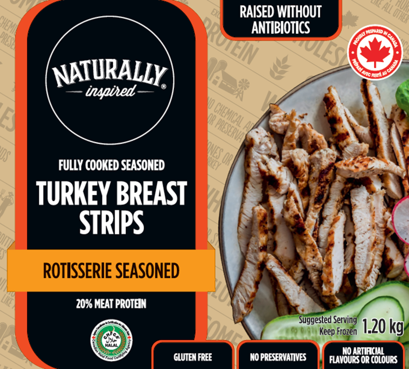Lanières poitrines dindon assaisonnées et cuites - Congelées (code 08577)